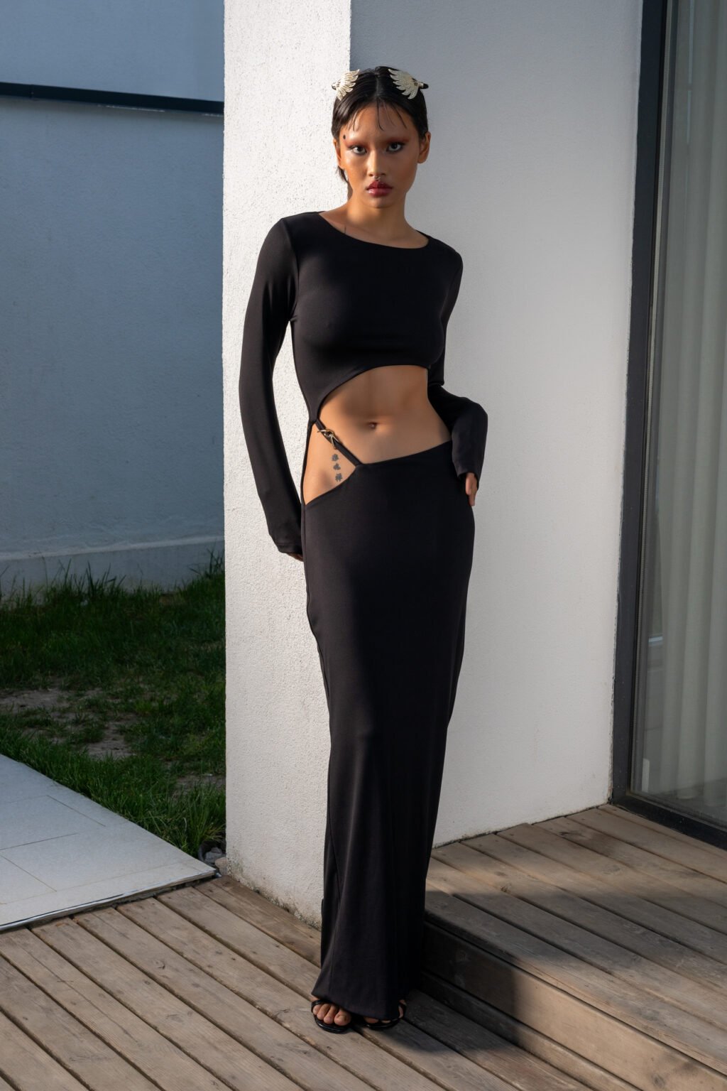 Bazı arzular sözcüklere sığmaz, sadece bir bakışta, bir dokunuşta hissedilir. Deseo Secreto, işte tam da bu duyguların vücut bulmuş halidir. Modern ve zarif tasarımıyla, bu siyah cut-out elbise, kadının içindeki gizli tutkuyu zarafetle ortaya çıkarır.